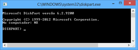 No prompt, rode o comando diskpart. Ele pode demorar alguns segundos para iniciar, quando estiver carregado aparecerá à esquerda DISKPART>.