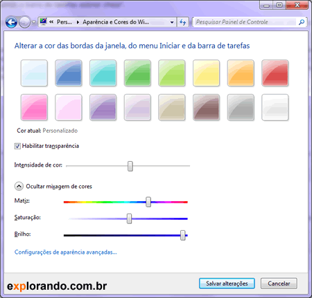 mixagem de cores no aero do windows 7