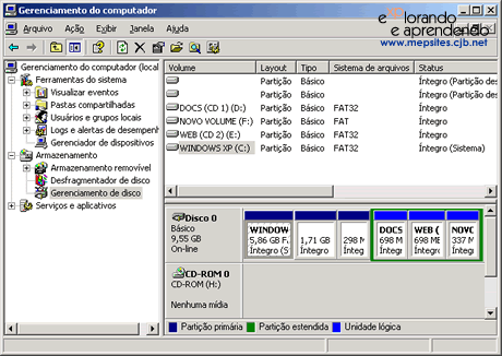 a tela do gerenciador de disco, num computador com